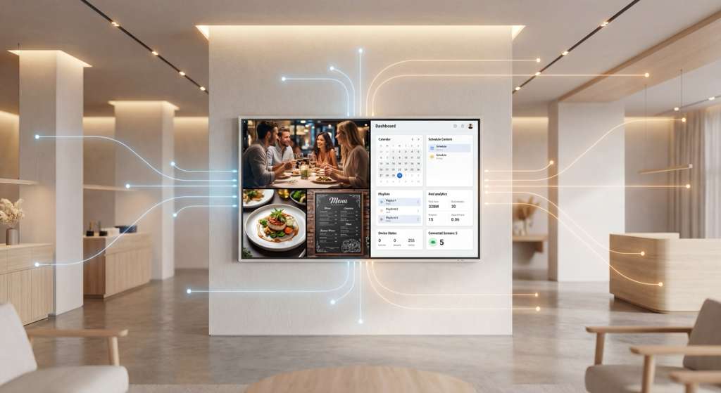 Monitor status, schedule content, and push updates remotely — no site visits, no USBs, no downtime.