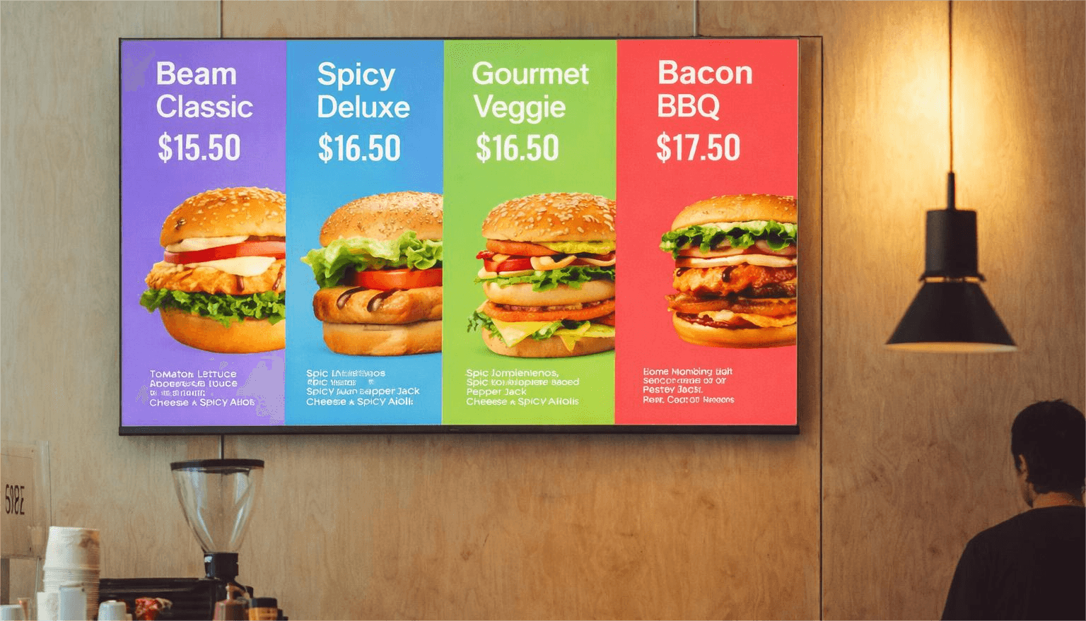In-store advertising in restaurants uses strategically placed displays and screens to promote menu items and offers to consumers at the point of ordering