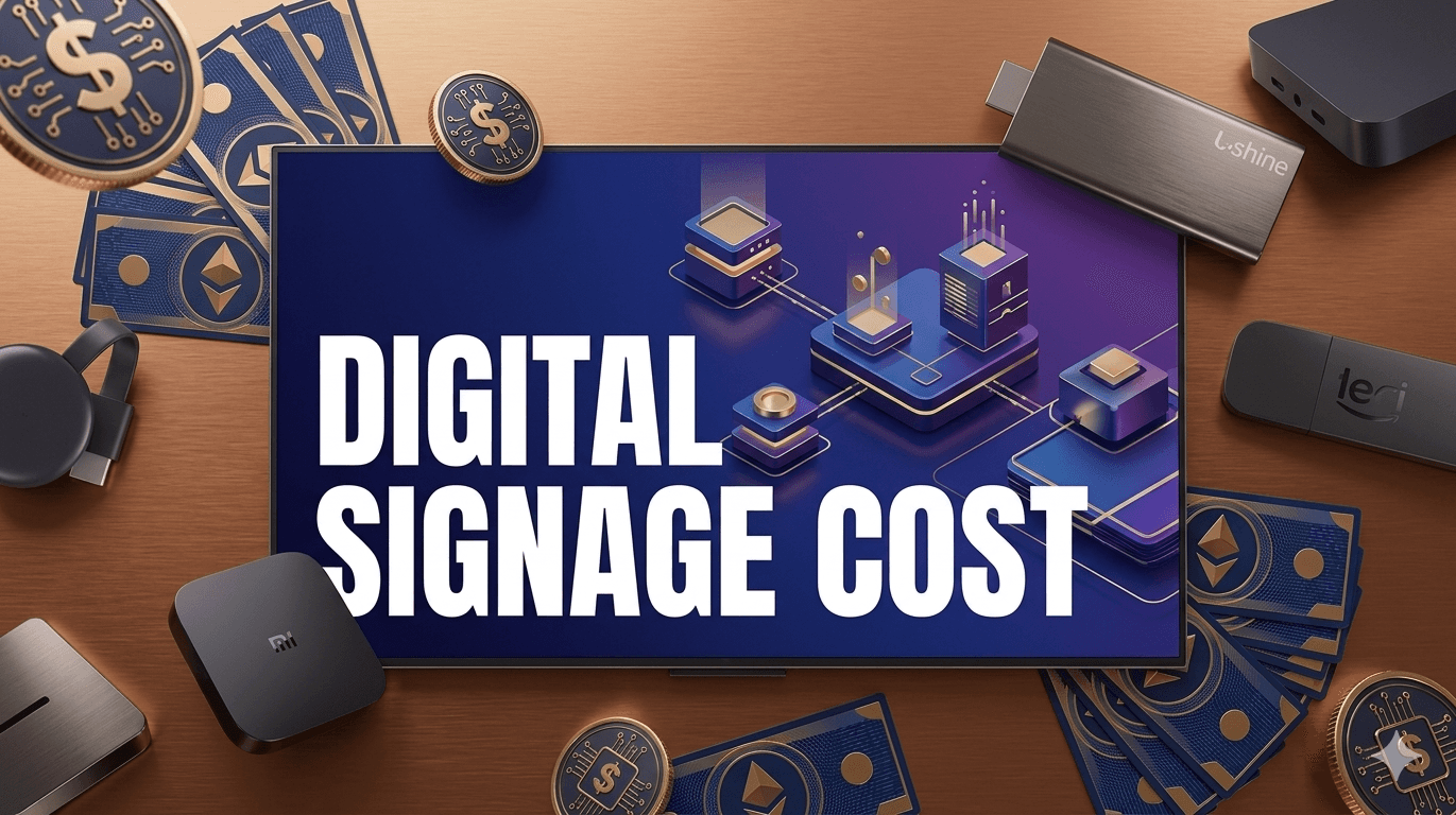 Digital signage costs for businesses depend on your screen count, location type, and features. A simple setup typically starts from a few hundred to several thousand dollars, depending on hardware, software, and scale.