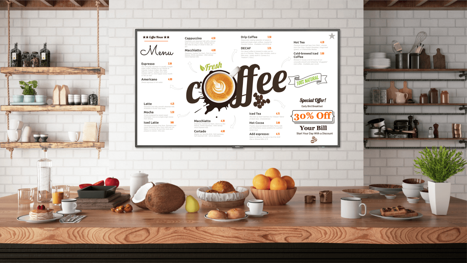 A medium-sized cafe updates its digital menu boards each morning with fresh specials and prices. Customers order faster, and the business sells more high-margin items throughout the day.